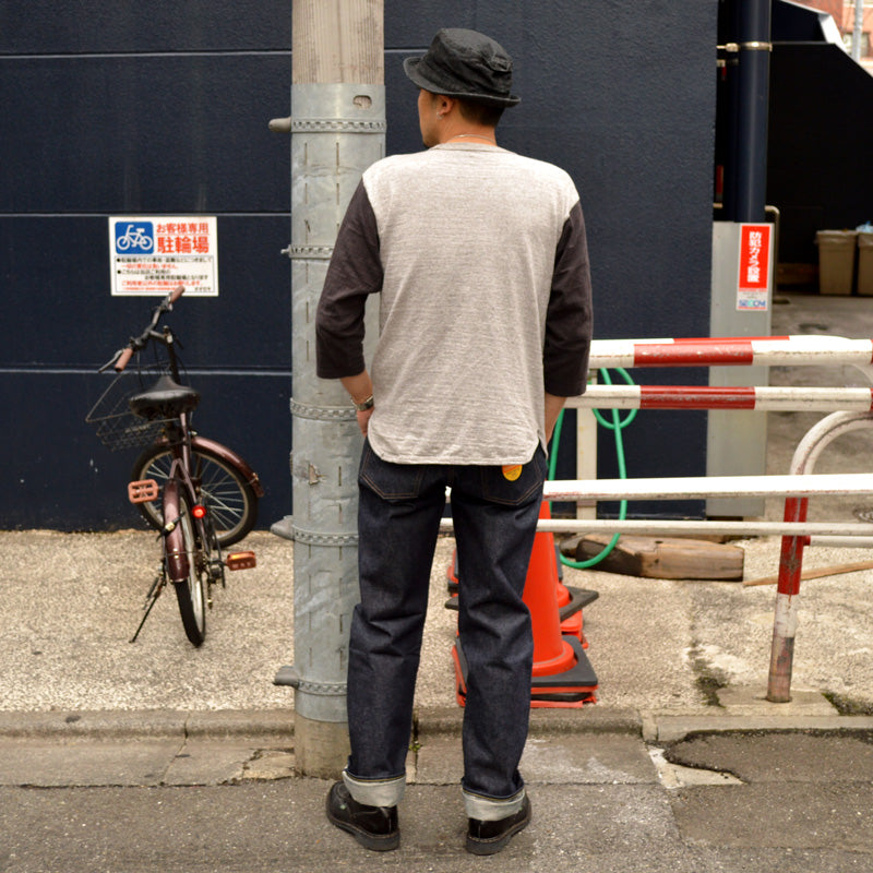 The fabric was jointly developed with Kurabo based on the recipe of the time, and the same uneven thread that was ring-spun from rice cotton was dyed in a special color rope and finished with vegetable dyeing to create a deep DENIME. Reproduced a unique color.