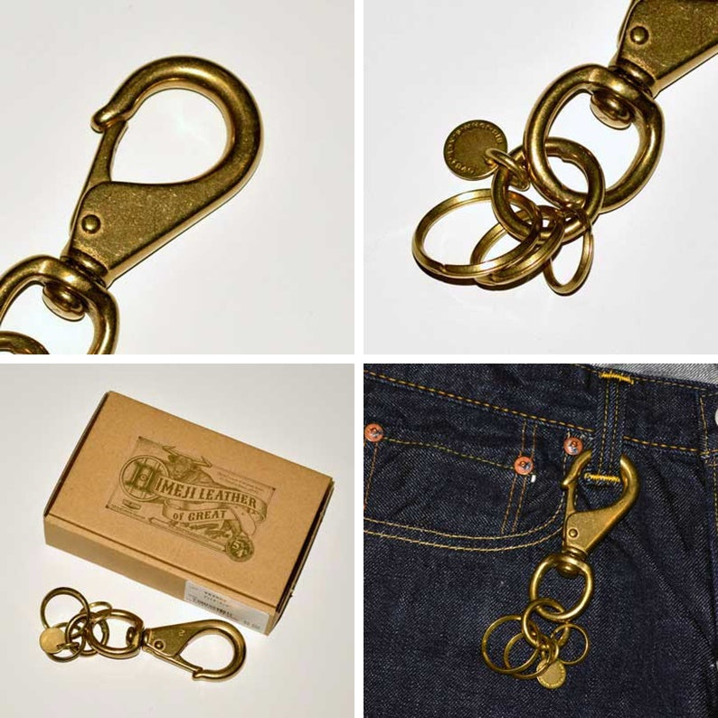 This product has an "unpolished finish" and features a rugged impression that makes use of the rough surface feel unique to brass, which goes well with jeans.
