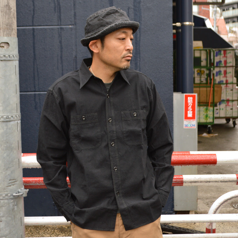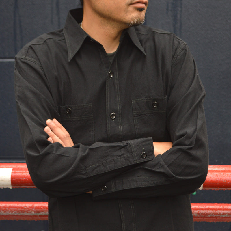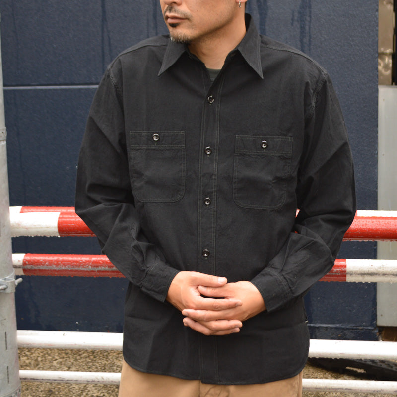 This is a black version of the blue chambray shirt, a best-seller at Buzz Rickson's for over 20 years.