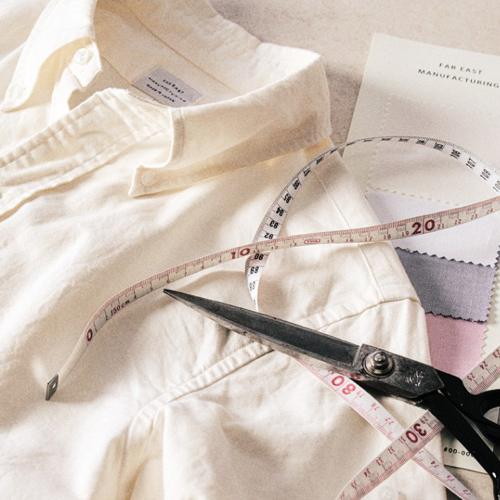 RESOLUTE's Mr. Hayashi has supervised a new shirt brand called "FAR EAST MANUFACTURING." We offer 4 sleeve length sizes for each neck so that each wearer can choose the perfect size.