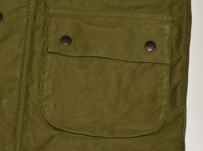 The lining is a reproduction of the fabric used in M-51 PARKA by FOB Factory. The original "VATDYE Ox" has excellent durability and is fully backed.