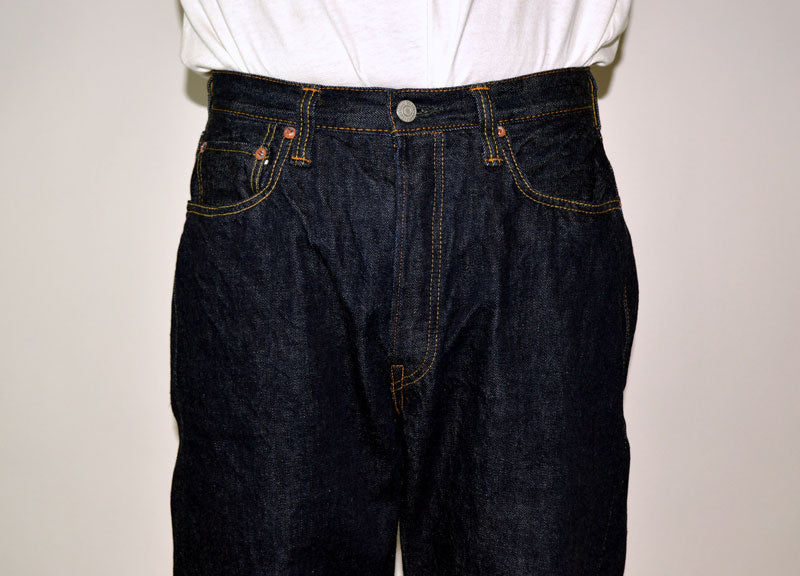 -Product number 0105-Zimbabwe 100% cotton-Made in Japan-Detail leather patch, copper rivets, button fly, cotton thread sewing, selvage, hidden rivets