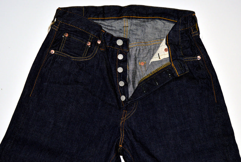 The front has a button fly, and the buttons and rivets are of course original specifications.