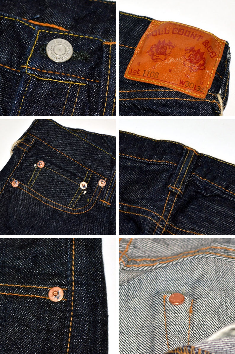 -Product number 1108-Zimbabwe 100% cotton-Made in Japan-Detail leather patch, copper rivets, button fly, cotton thread sewing, selvage, hidden rivets