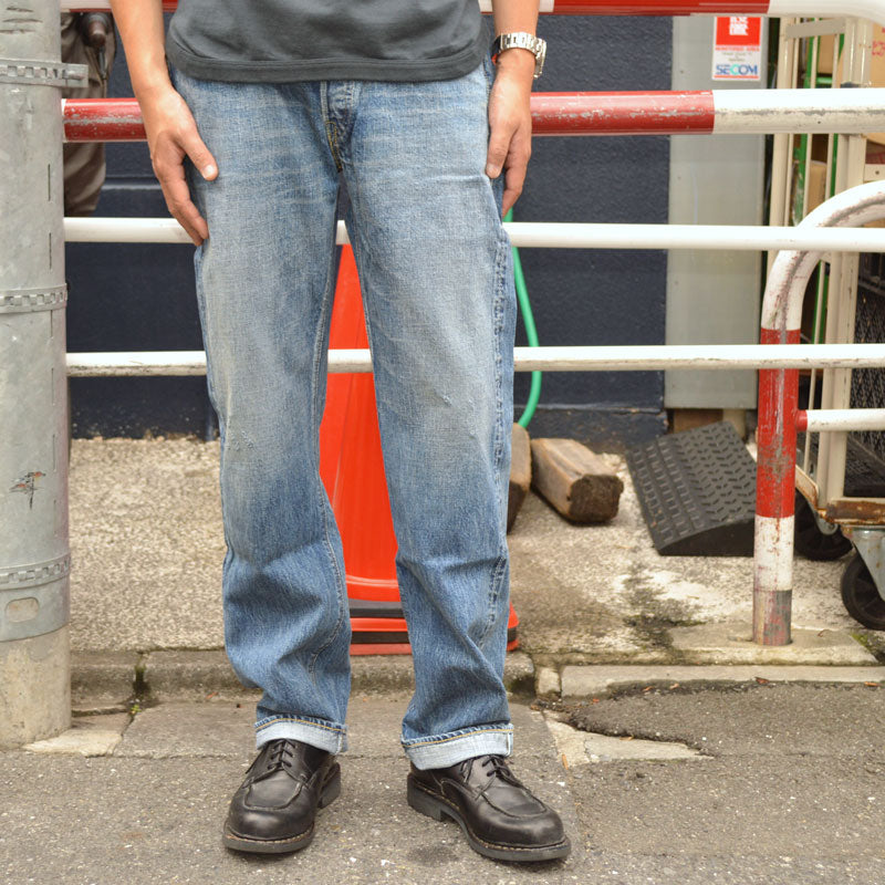 Located about 25km southeast of London, Dartford is where Mick Jagger and Keith Richards met on platform 2 of this station in 1961, which led to the formation of the Rolling Stones. Full Count started with a jacket inspired by the color of the denim jacket worn by Mick Jagger in his younger days, and these pants are the perfect set. The slightly yellowish color, intense marks, and abrasion are the best.