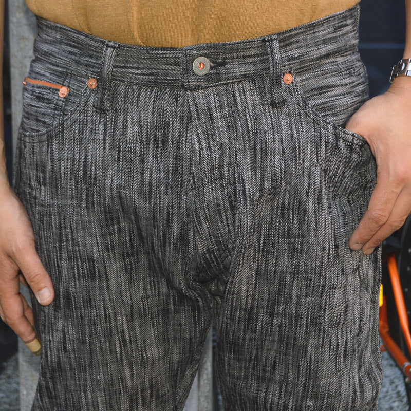 This is a raw denim woven on an old-fashioned power loom that has not been treated to prevent shrinkage or twist, nor singed, and is a fabric that pursues a vintage feel.