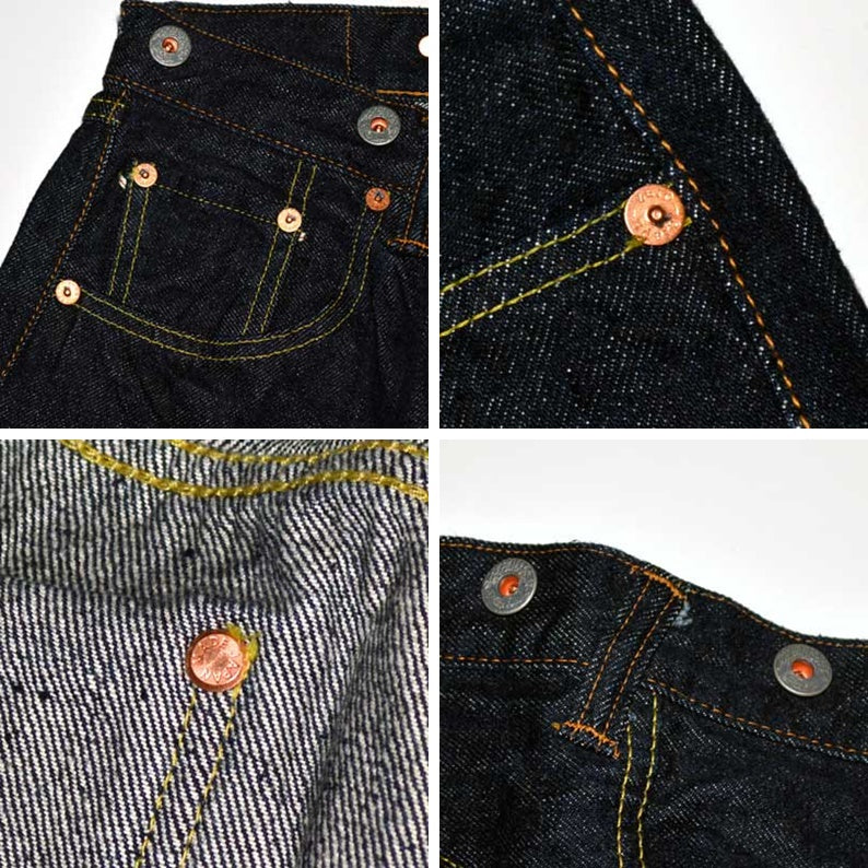 ・Product number: GZ-16LST-03 ・100% cotton ・Made in Japan ・Details: Leather patch, copper rivets, button fly, cotton thread sewing, selvedge, hidden rivets