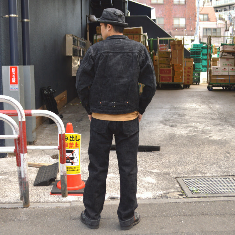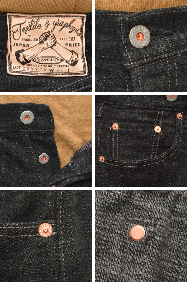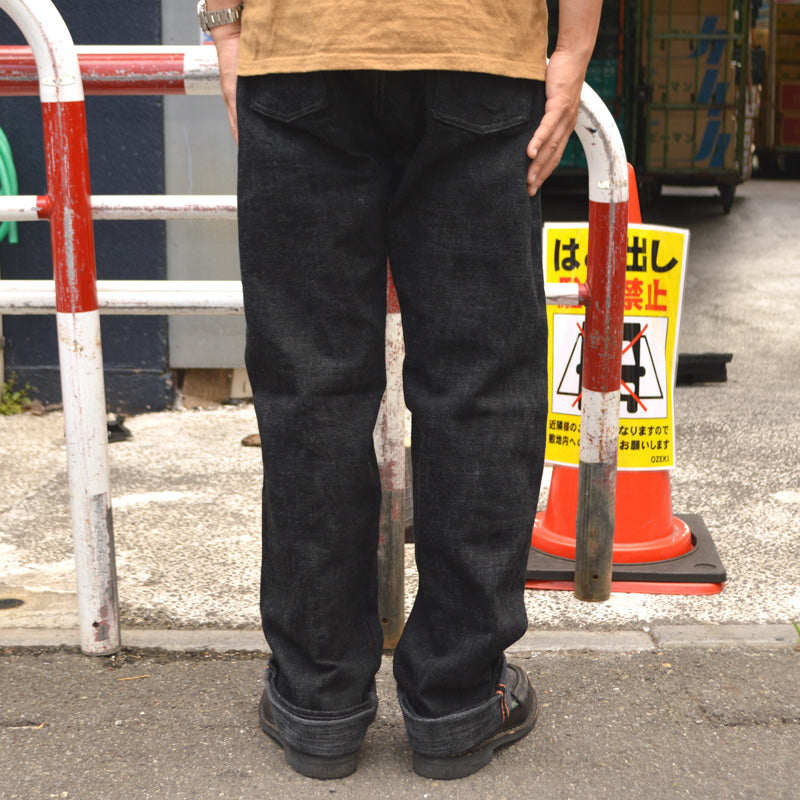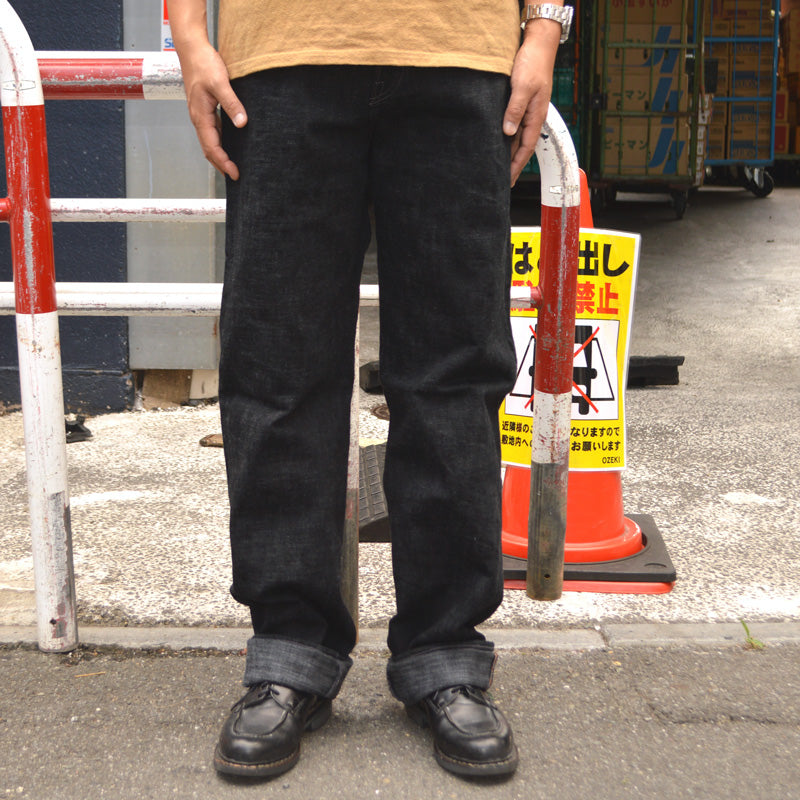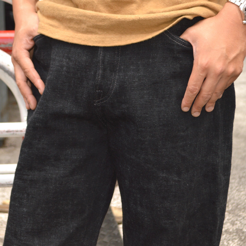 Product number: GZ-HRJSK-BK; 100% cotton ; Made in Japan; Details: Tanned leather patch, copper rivets, button fly, iron buttons, cotton thread stitching, selvedge , hidden rivets, red piss