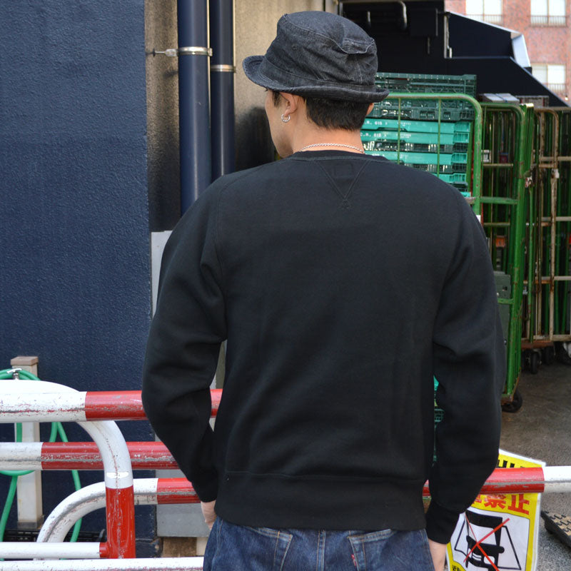 It appeared in the 1970s during the transition from hanging knitting machines to innovative knitting machines, and because it is knitted slowly, there are few of them in existence. As a result, you can enjoy the uneven surface and fluffy texture. In the case of round brushing, it takes four times more effort than normal brushing to evenly brush four sides according to the flat surface. Brushing before dyeing brings out the unique texture of the material. Most of the sewing is done with a double needle, and the cuffs are made of circular knit ribbing. The cuff ribbing is ribbed in one go from the double needle sewing under the armpits, faithfully reproducing the vintage sewing method. This sweatshirt is a piece that allows you to enjoy the unique texture and details of the time.
