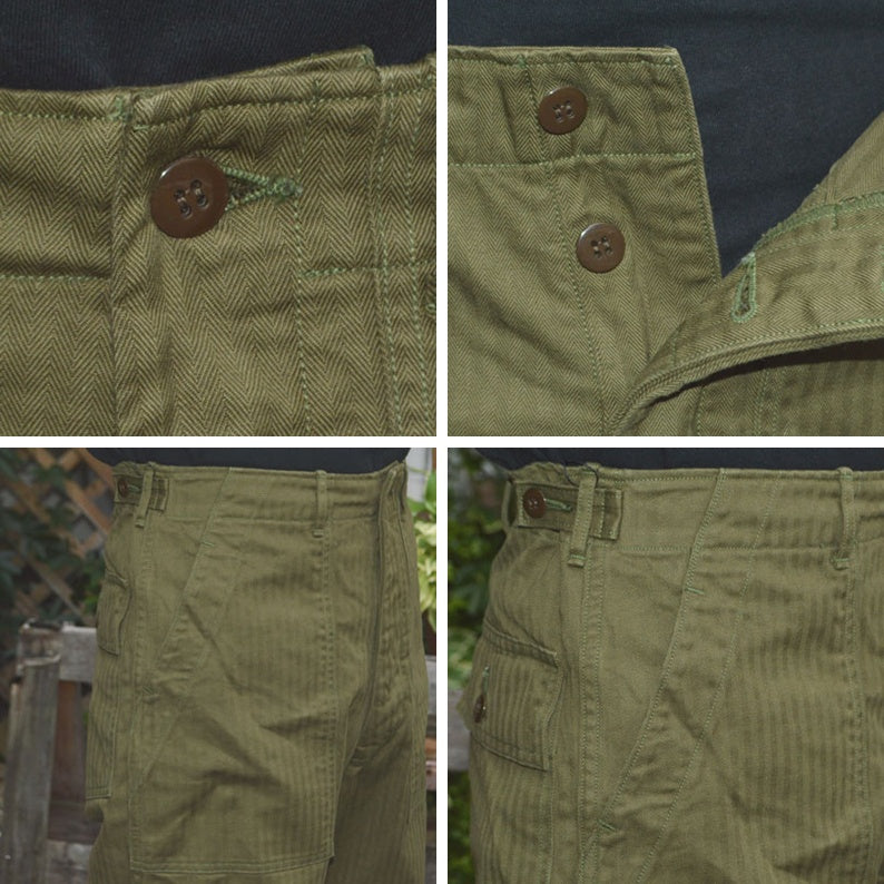 This time, we have reproduced baker pants made of herringbone twill that was adopted by the US military in 1947.