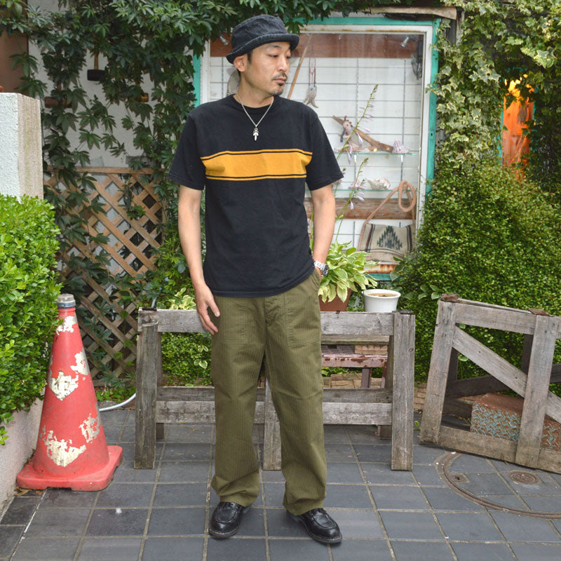 The baker pants this time are made of herringbone twill fabric and are characterized by their firm texture. The vintage herringbone from that time is a durable fabric with clear ridges created by changing the twist.