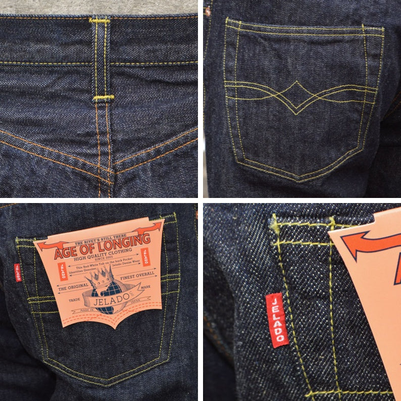 The leather patch, single-sided tab, long side stitches, and thick belt loops similar to those used in the Great Belt Loop War are all reproduced to make it possible to determine the age.