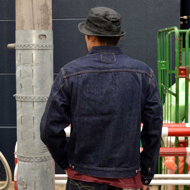 Of course, the back of the flap is made of a separate light ounce denim, the front button is an iron button, the rivet on the sleeve is an original copper rivet, and the rayon red tab is reproduced as it is in the vintage.