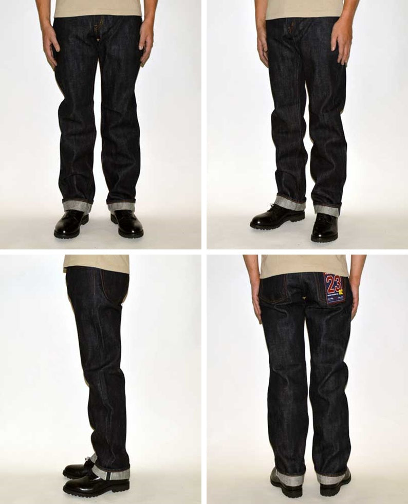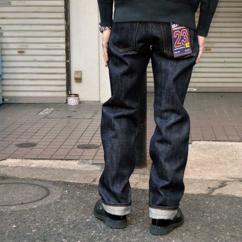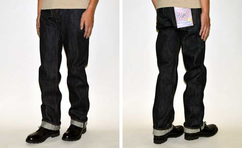 Basic 5-pocket straight jeans using extra-thick 23oz heavy ounce denim.