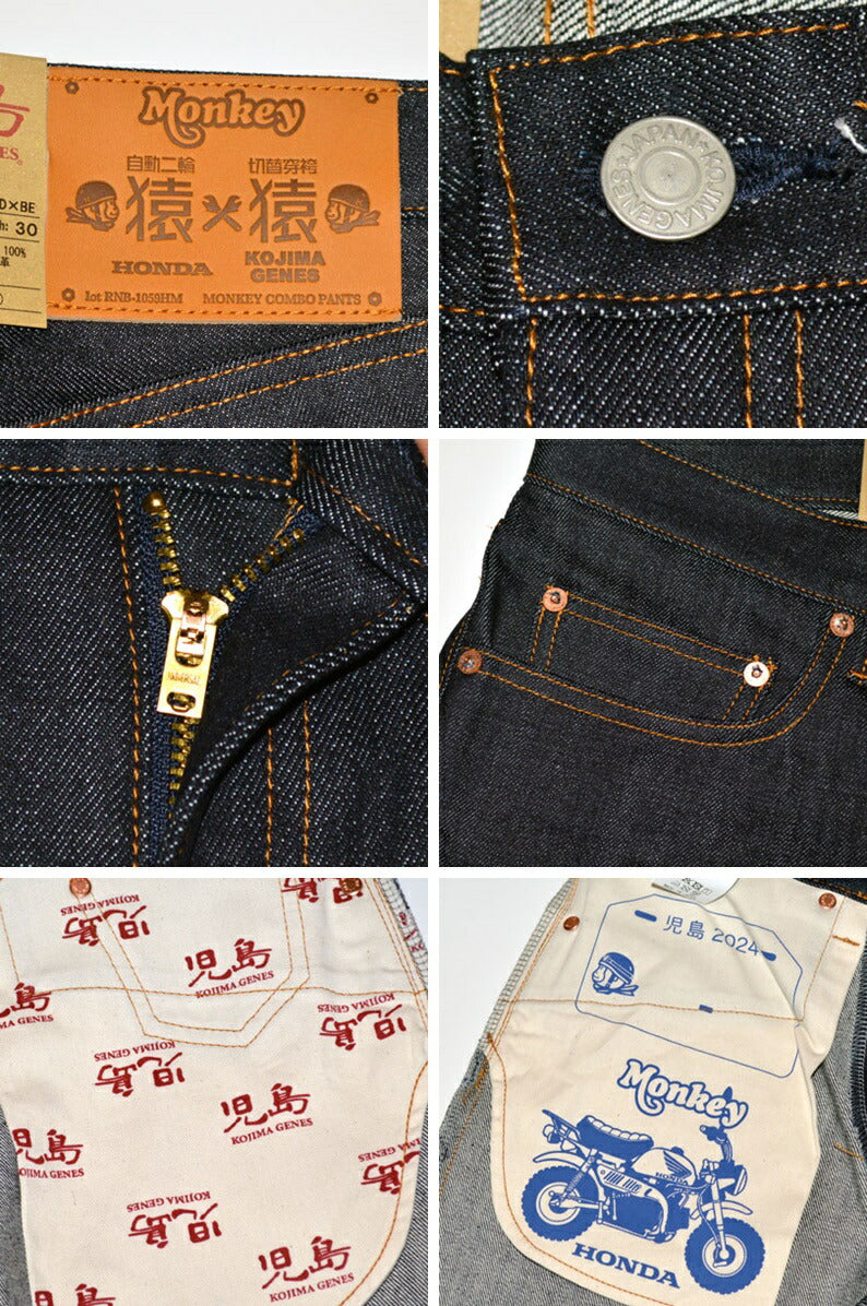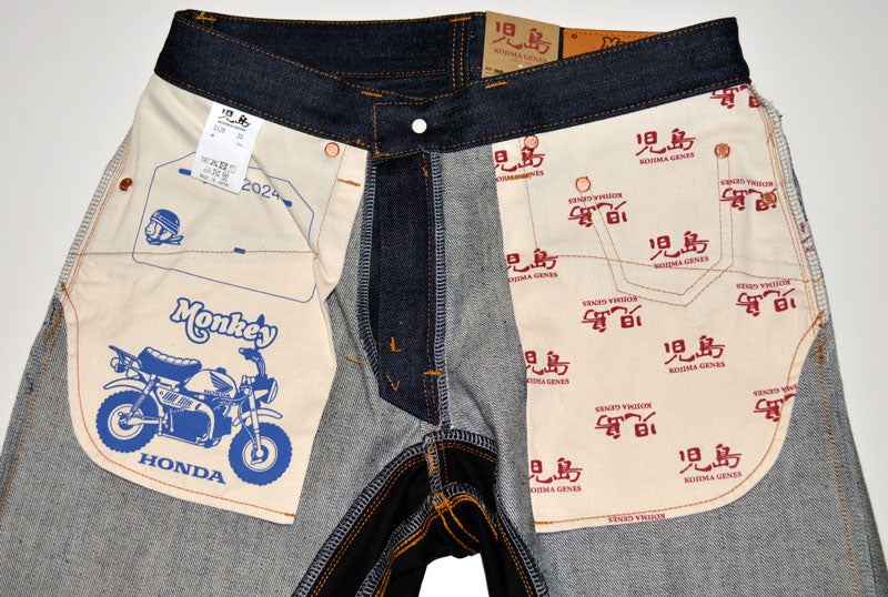 A special collaboration jeans that combines two Monkeys, the famous Honda Monkey and Kojima Jeans Monkey Combo Pants.