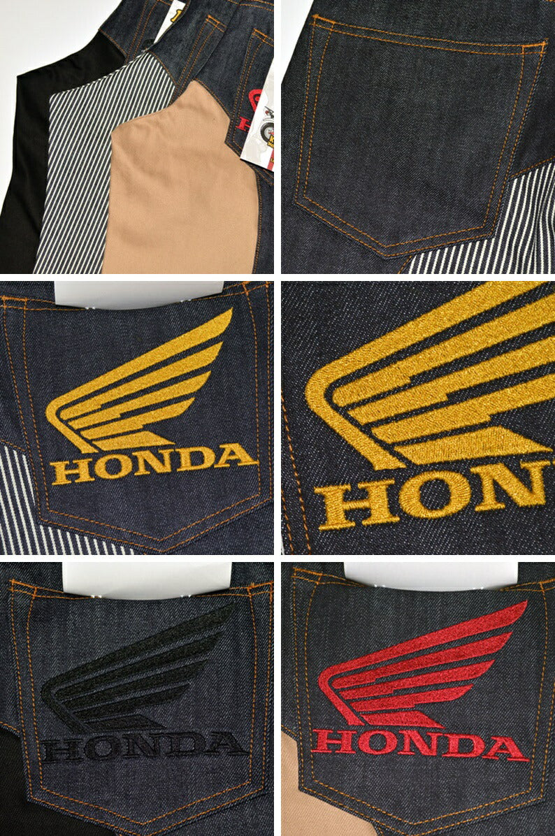 The bold inseam switching of the Monkey Combo Pants features an embroidered Honda wing mark on the back pocket, creating a very impactful design.