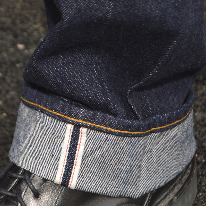 Woven on an old-fashioned shuttle loom, the denim is approximately 27-29 inches wide and is characterized by both ends being sewn with red thread (red selvedge).