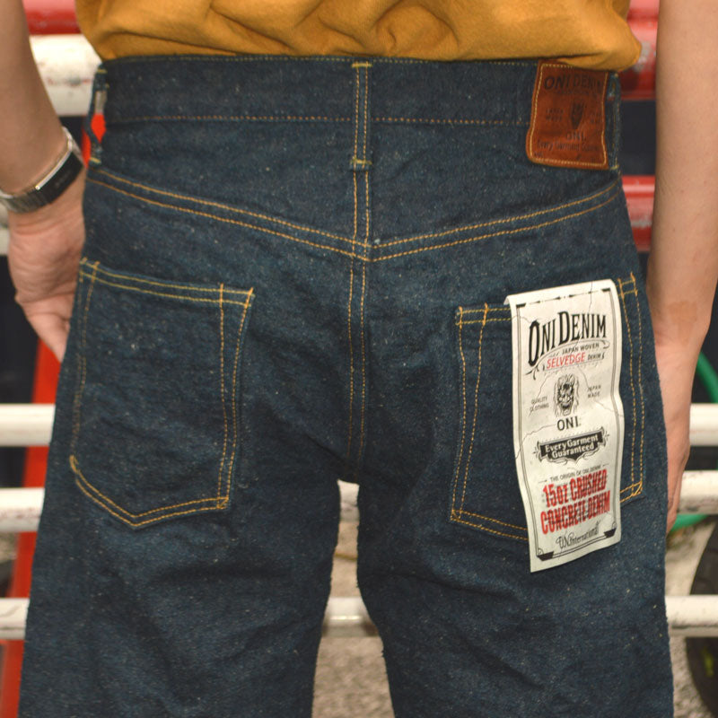 As the name suggests, this 15oz denim has a very strong nep and uneven texture, and is rugged like concrete.