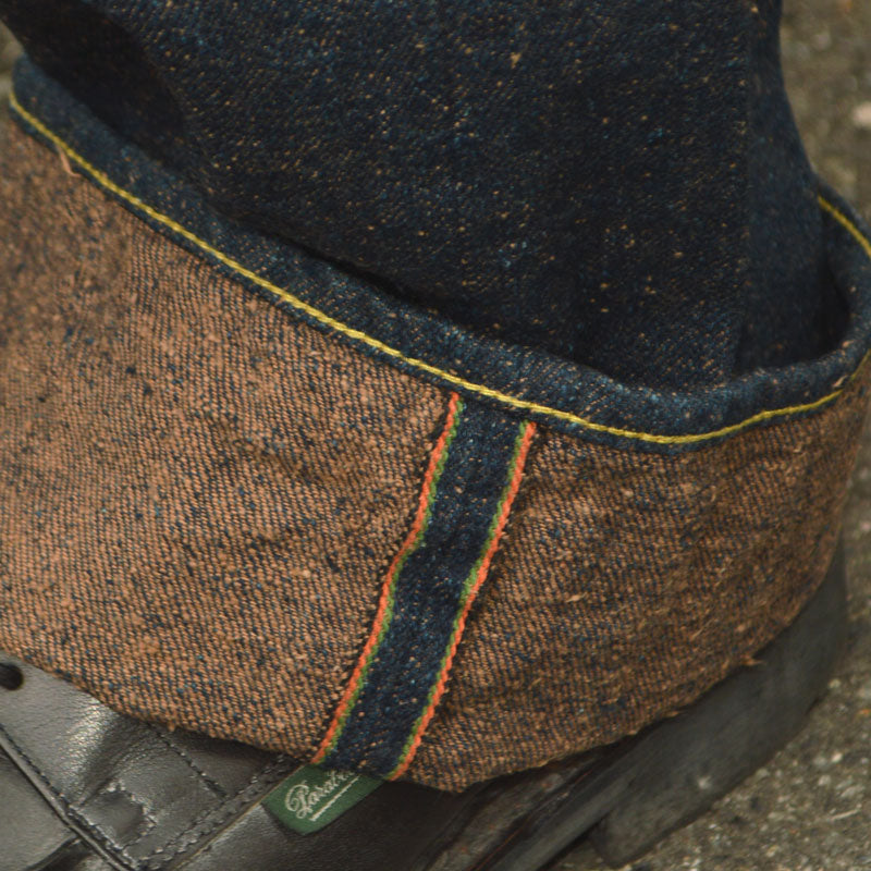 As the name suggests, this 15oz denim has a mocha weft thread that is very rough and sluggish, like concrete.