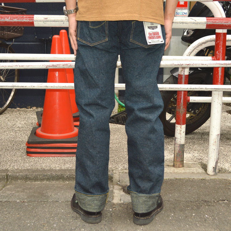 As the name suggests, this 15oz denim has a very strong nep and uneven texture, and is rugged like concrete.