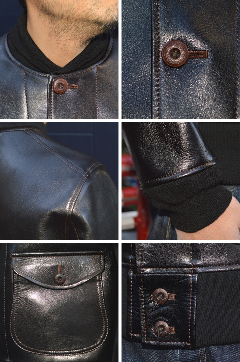This leather jacket has a thick, sturdy leather texture that will change over time.