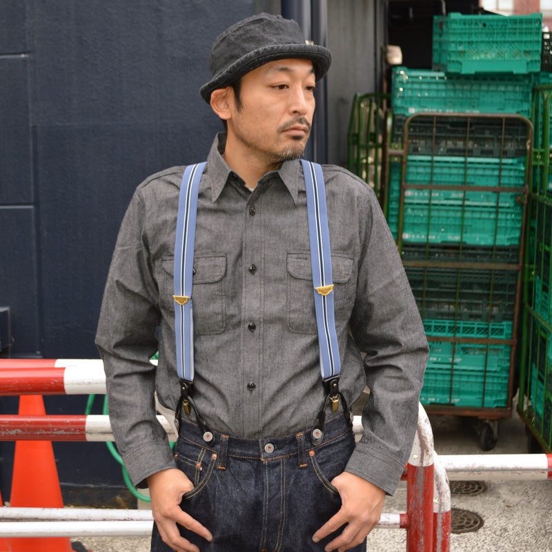 These suspenders feature a line on the obi belt. They can be fastened with either suspender buttons or clips, making them extremely easy to use. They can be worn with bottoms that have suspender buttons, as well as those that don't. They're easy to coordinate with casual outfits, allowing you to enjoy a classic look. In addition, this season's production comes with optional spare buttons, so you can sew them onto your bottoms yourself and attach suspenders using leather parts. (You can choose freely according to your preference.) These suspenders are made of elastic, so they're stretchy and the length can be adjusted with metal fittings. The sturdy 35mm elastic gives them a classic design.
