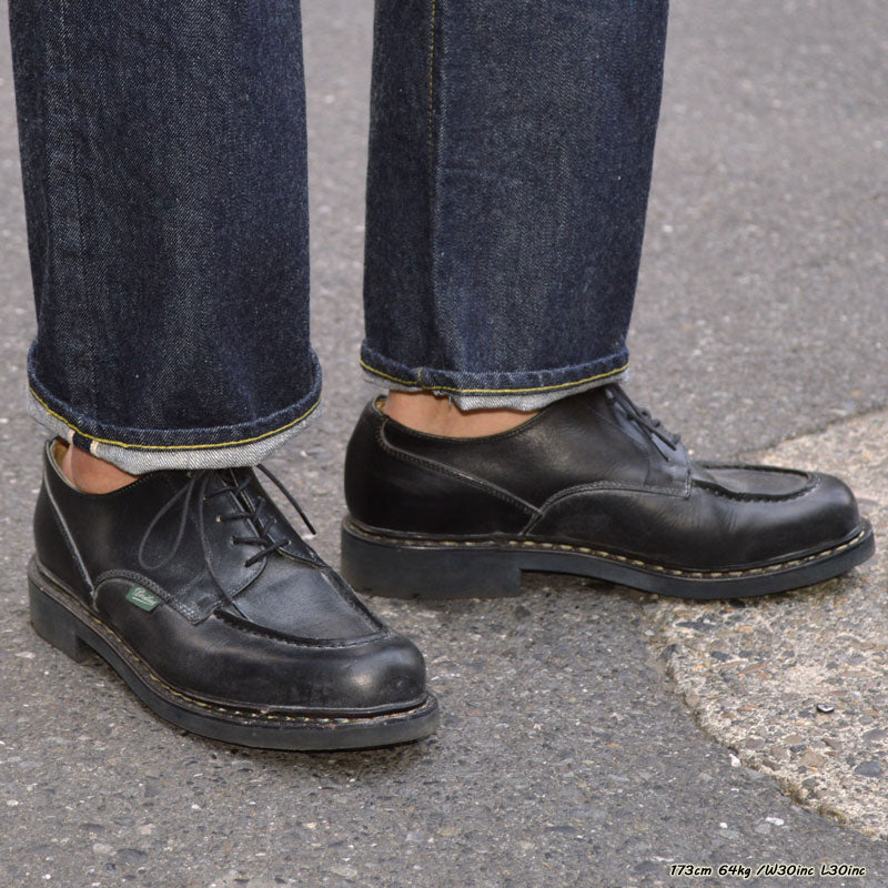 -Product number 711-100% cotton-Made in Japan-Detail leather patch, copper rivets, button fly, cotton thread sewing, selvage