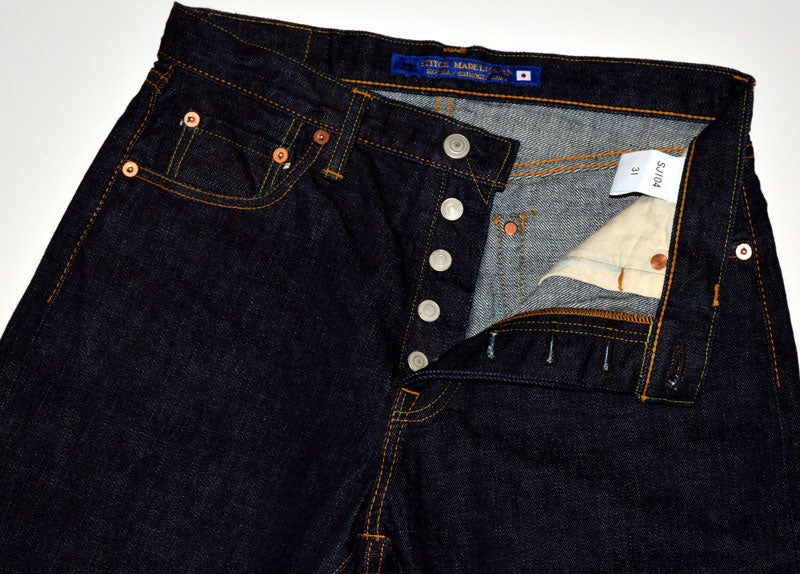 ・ Part number SJ104 ・ 100% cotton ・ Made in Japan ・ Details Leather patch, copper rivet, button fly, cotton thread sewing, selvedge, hidden rivet