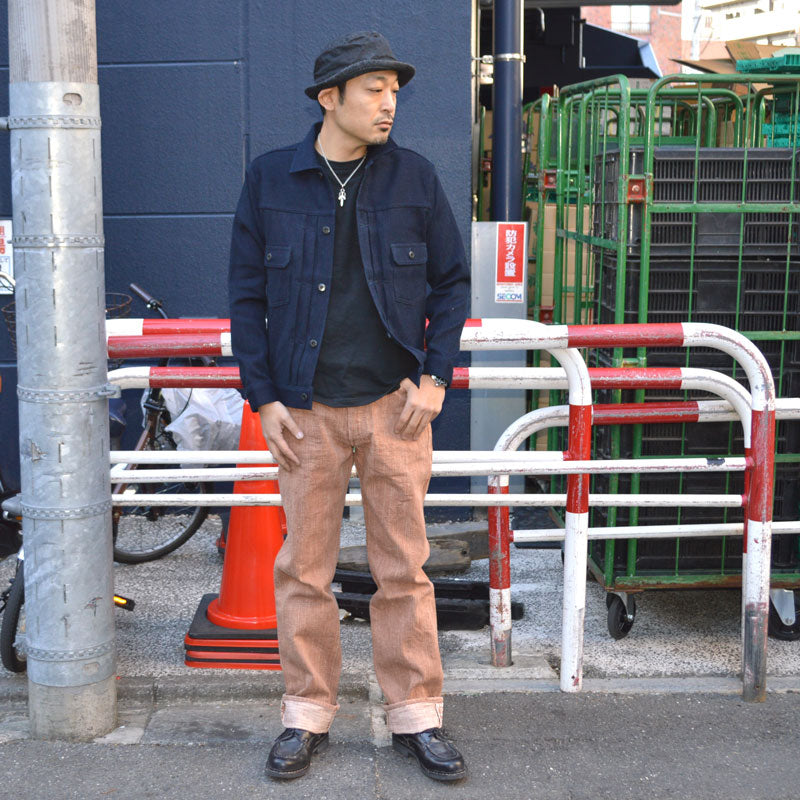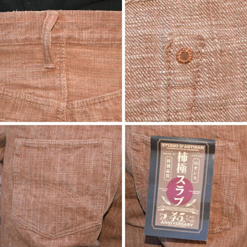 The unique unevenness and slubby texture are heavy, and the color and texture of the persimmon tannin dye give it a finish that makes you feel the commitment of Japanese denim that is not found in other denim.