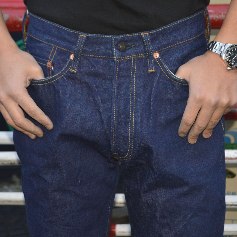 Item No.: SP-117 ・100% cotton ・Made in Japan ・Details Leather patch, copper rivets, button fly, selvedge, hidden rivets
