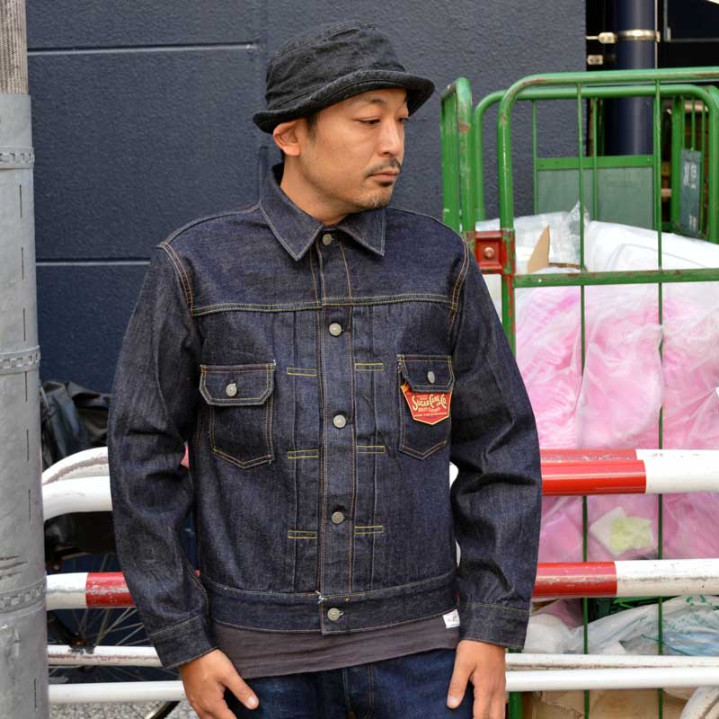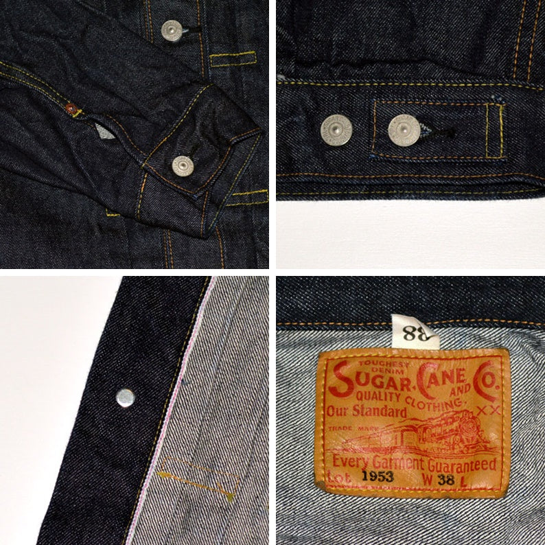 This is Sugar Cane's classic denim jacket. This is a 1953 model from the transitional period when denim jackets became casual wear instead of work wear.