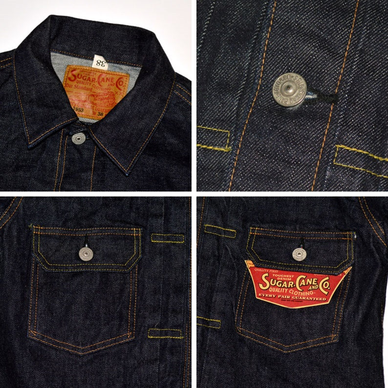 The denim fabric is Sugar Cane's original 14.25 oz. selvedge denim, which has been thoroughly analyzed and reproduced from vintage denim.