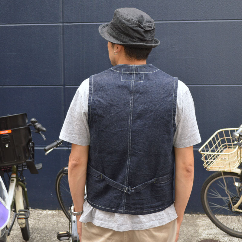 This work vest is made of 9 oz Wabash stripe fabric. The sample reference is from around the 1920s.