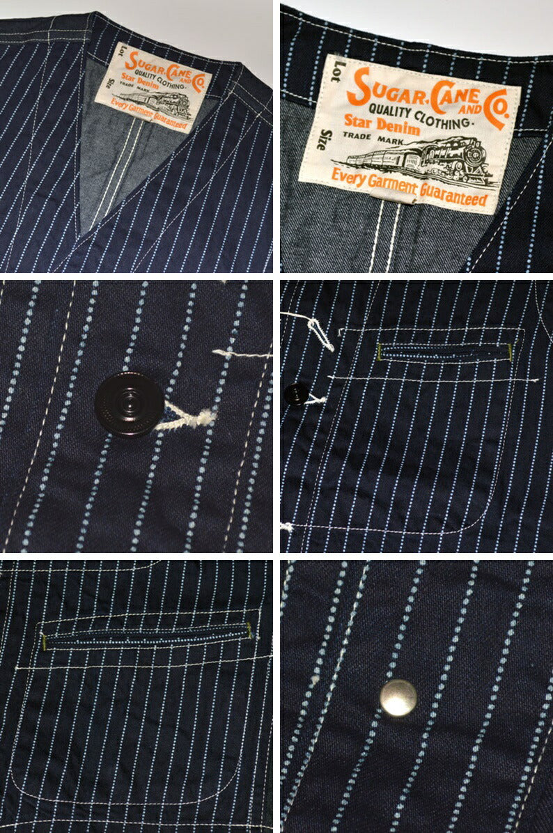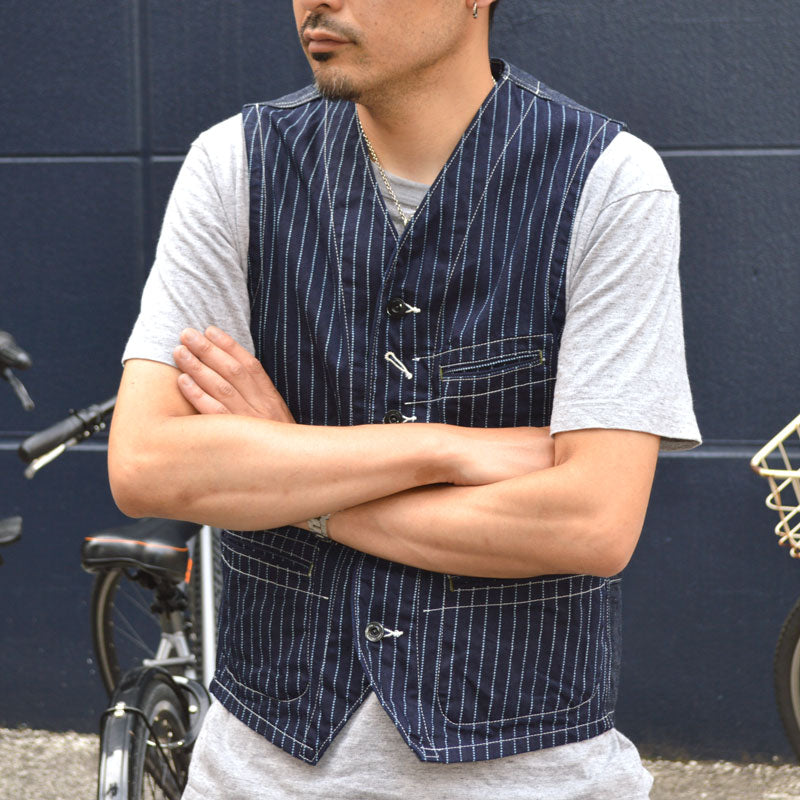 SUGAR CANE "SC12654" 9oz. WABASH STRIPE WORK VEST