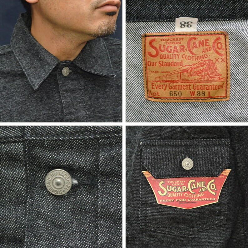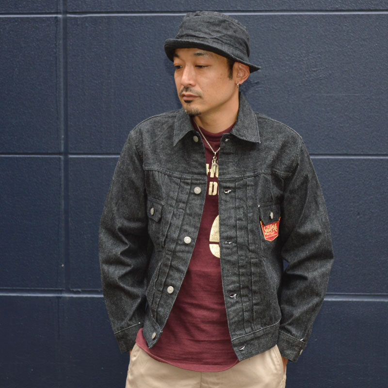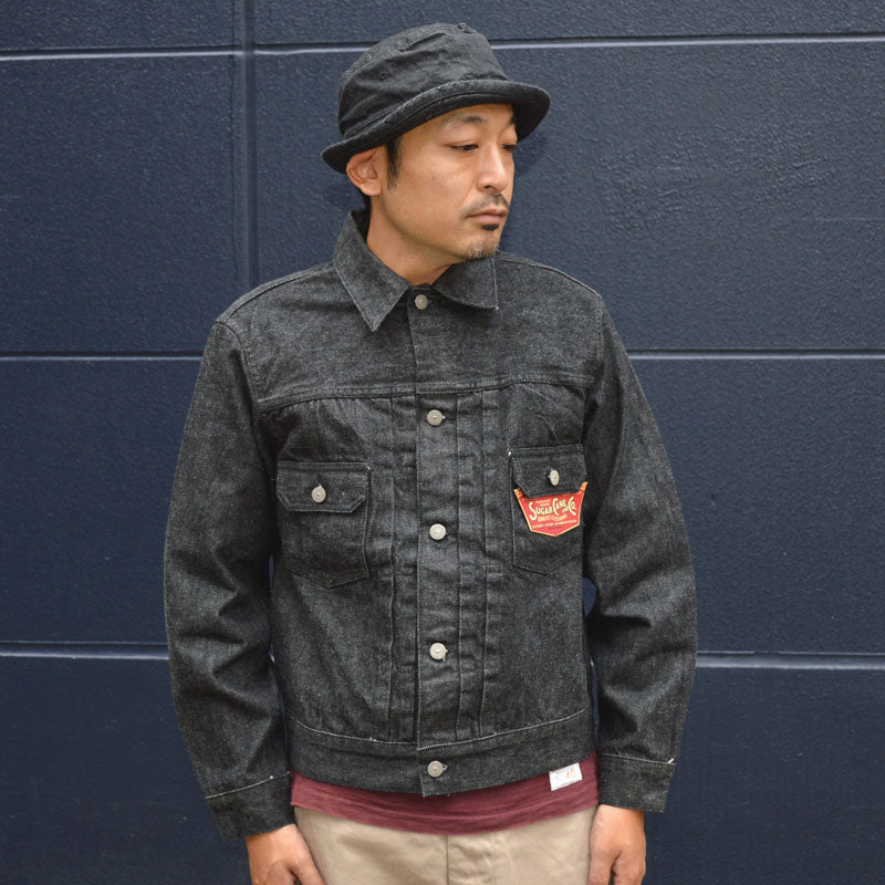 This is Sugar Cane's classic denim jacket. This time, it is made of black denim.