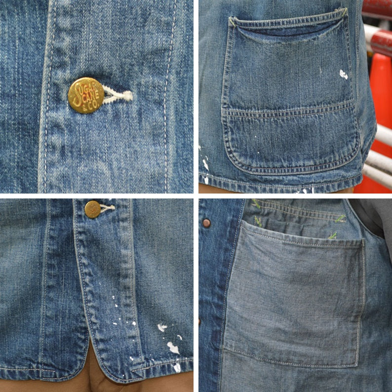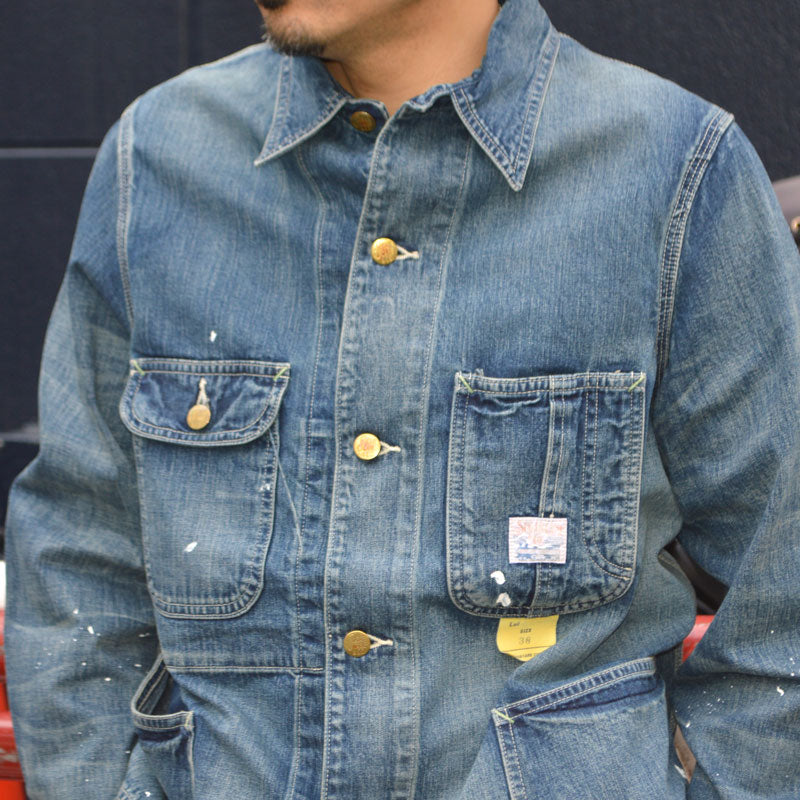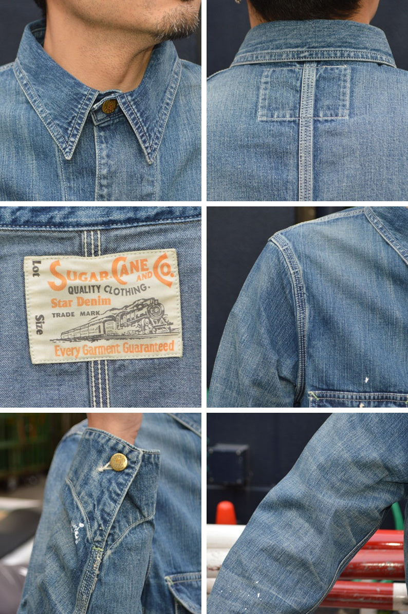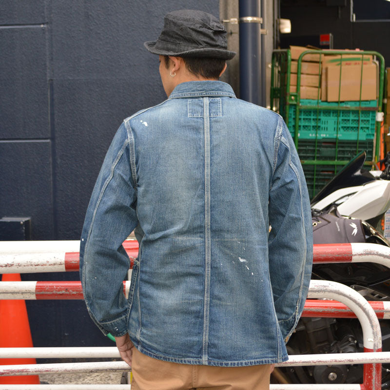 Based on the classic blue denim work coat (Lot No. SC15655), this model incorporates the aging of a vintage work coat that Sugar Cane owns as a reference.