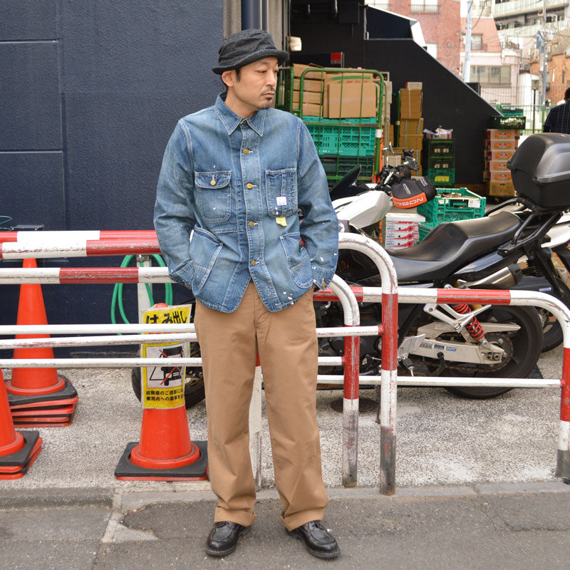 The details are simple, but the work coat is a store brand work coat from after World War II, with vintage details such as a gacha pocket.
