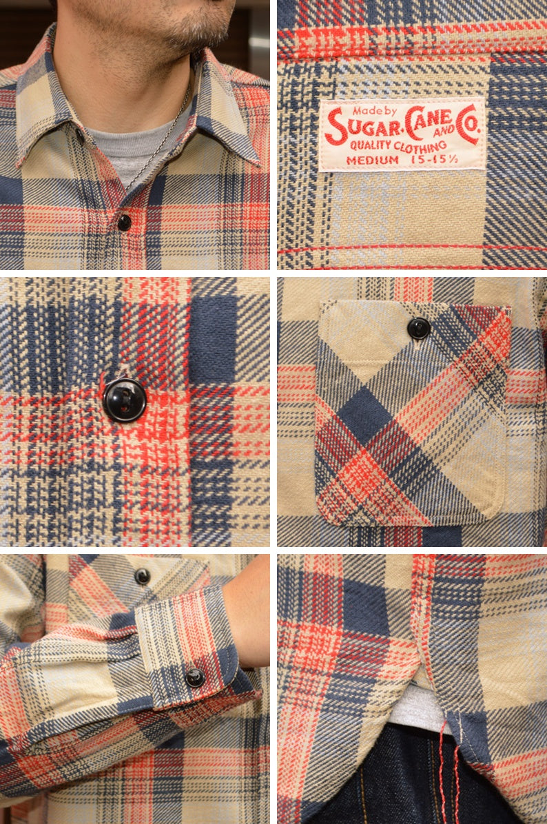 [SUGAR CANE "SC29562" TWILL CHECK L/S WORK SHIRT]