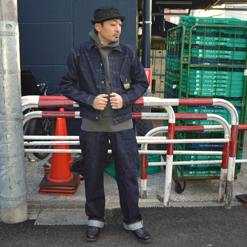 Item number SC42025・100% cotton 13oz Denim ・Made in Japan ・Details Leather patch, button fly, cotton thread sewing, selvedge denim