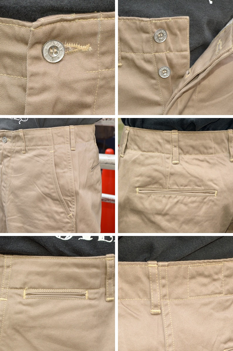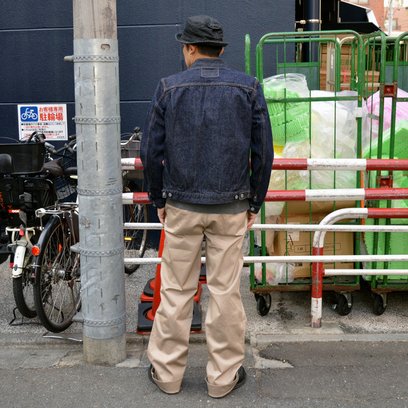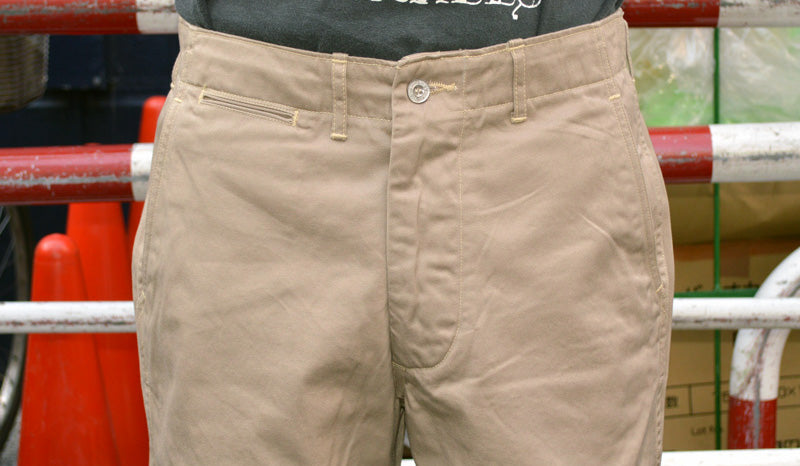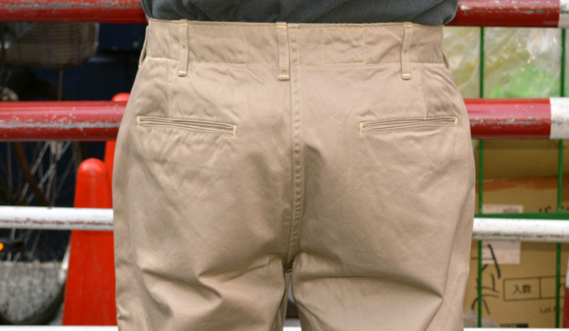 This is a 10oz fabric based on Vintage's 41Khaki. It is densely woven with 19-count yarn, which is a double thread of 38-count thread vertically, and 10-count thread, which is a double thread of 20-count thread horizontally. Cotton is rice cotton. In general, you often see chino cloths that use 20 count both vertically and horizontally, but TCB's fabric is 1st thick in the vertical direction and 10th thick in the horizontal direction, so it makes you imagine a slightly heavier fabric, but it is very supple and difficult to wear. I don't feel it at all.
