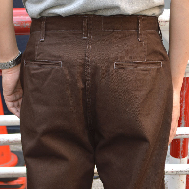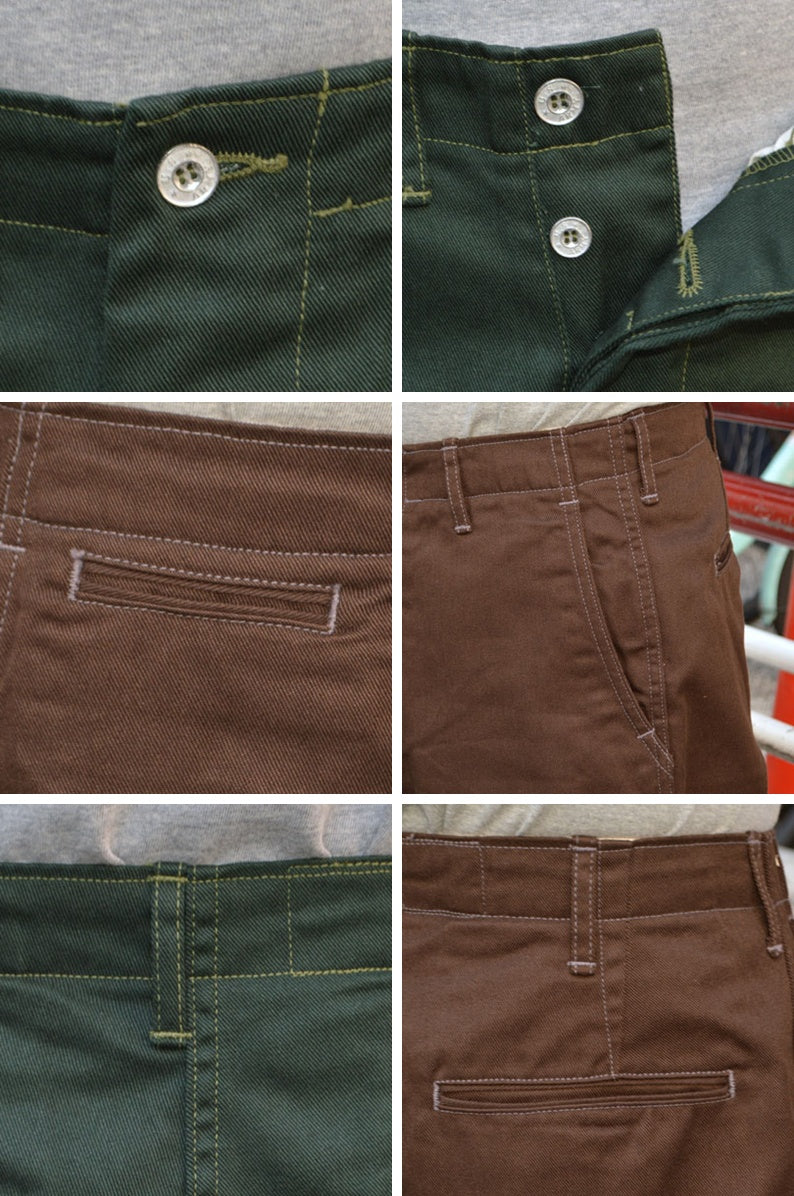 This is a 10oz fabric based on Vintage's 41Khaki. It is densely woven with 19-count yarn, which is a double thread of 38-count thread vertically, and 10-count thread, which is a double thread of 20-count thread horizontally. Cotton is rice cotton. In general, you often see chino cloths that use 20 count both vertically and horizontally, but TCB's fabric is 1st thick in the vertical direction and 10th thick in the horizontal direction, so it makes you imagine a slightly heavier fabric, but it is very supple and difficult to wear. I don't feel it at all.