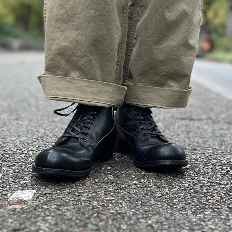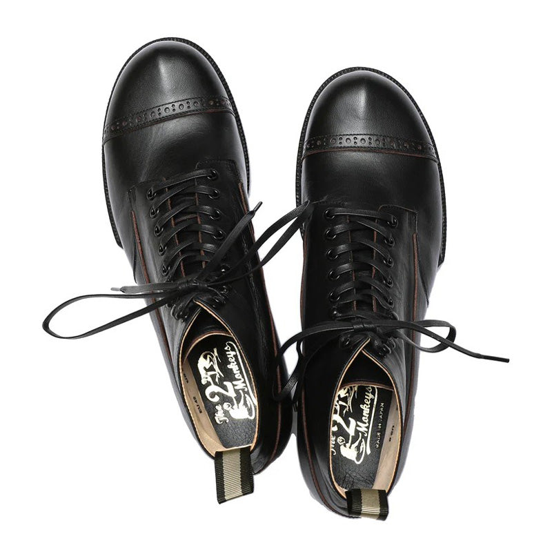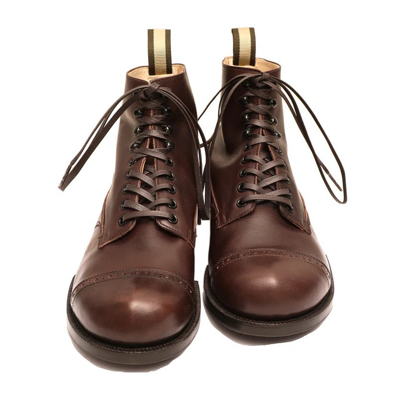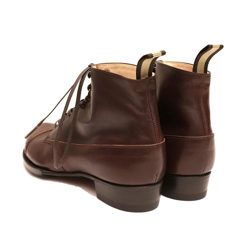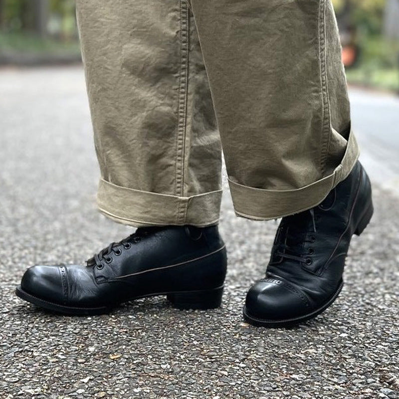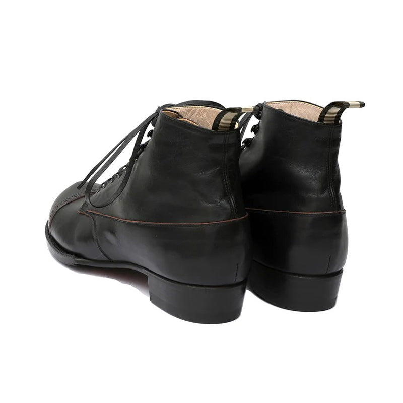 They were inspired by American and French boots from around 1910. These capped-toe boots feature a high toe (sometimes called a high-toe or bulldog-toe) and a waistband made of separate pieces sewn together above and below.