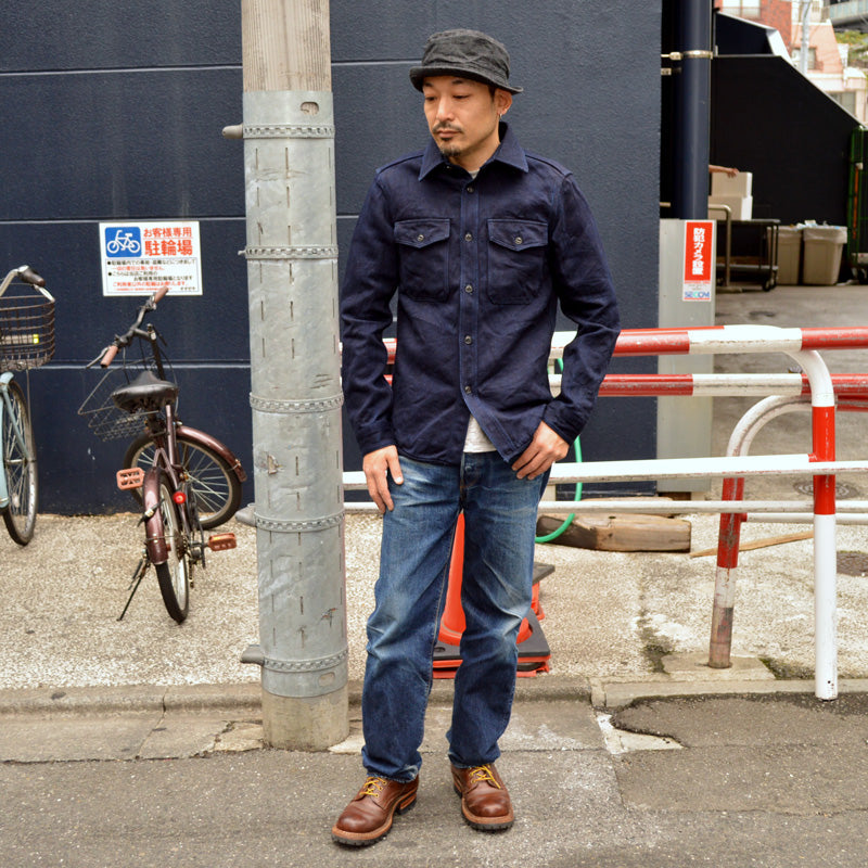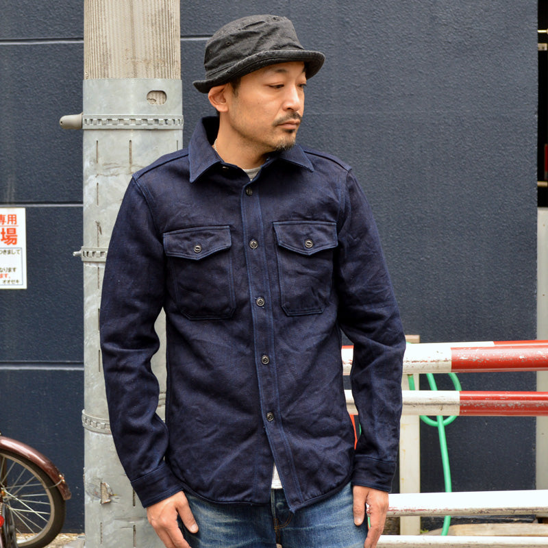 This is an original fabric made from indigo after researching old military clothing to bring out the uniqueness of UES.
