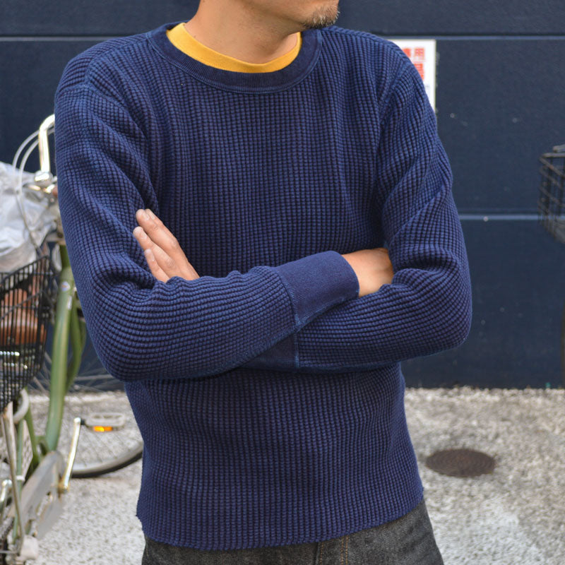 [UES "60BW-I" INDIGO BIG WAFFLT T-SHIRT Thermal]