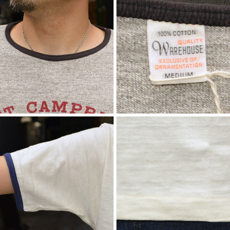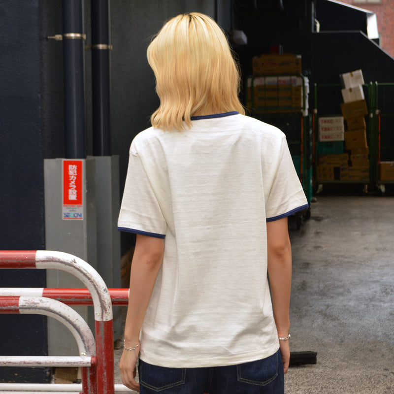 This ringer T-shirt uses Warehouse's standard body knitted on an old-fashioned low gauge knitting machine, which is said to be rarer than a hanging knitting machine.