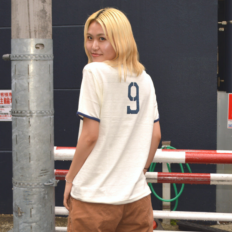 This ringer T-shirt uses Warehouse's standard body knitted on an old-fashioned low gauge knitting machine, which is said to be rarer than a hanging knitting machine.