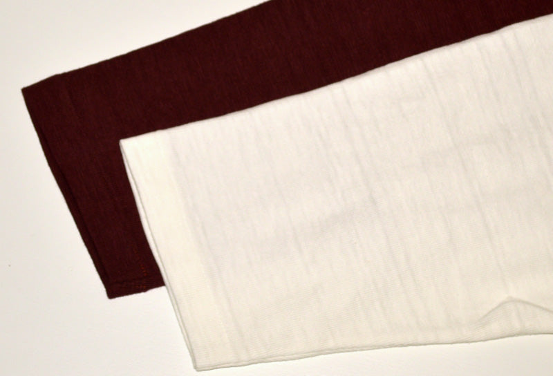 By washing, the grain of the fabric is clogged, and horizontal steps (shadow borders) appear. Made with 12th slub thread, it is a sweet knit fabric that is extremely soft to the touch and boasts excellent comfort without any stress.