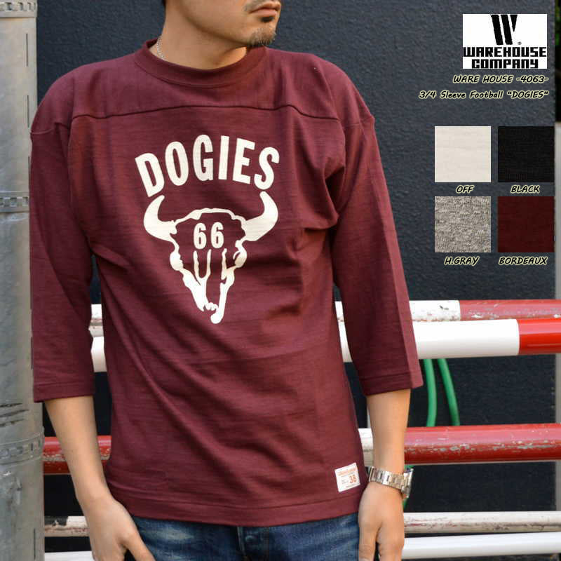 [WARE HOUSE "4063 DOGIES" 3/4 Sleeve Football T-shirt "DOGIES"]