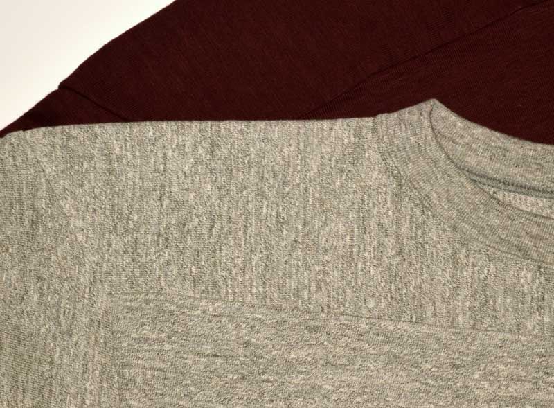 By washing, the grain of the fabric is clogged, and horizontal steps (shadow borders) appear. Made with 12th slub thread, it is a sweet knit fabric that is extremely soft to the touch and boasts excellent comfort without any stress.