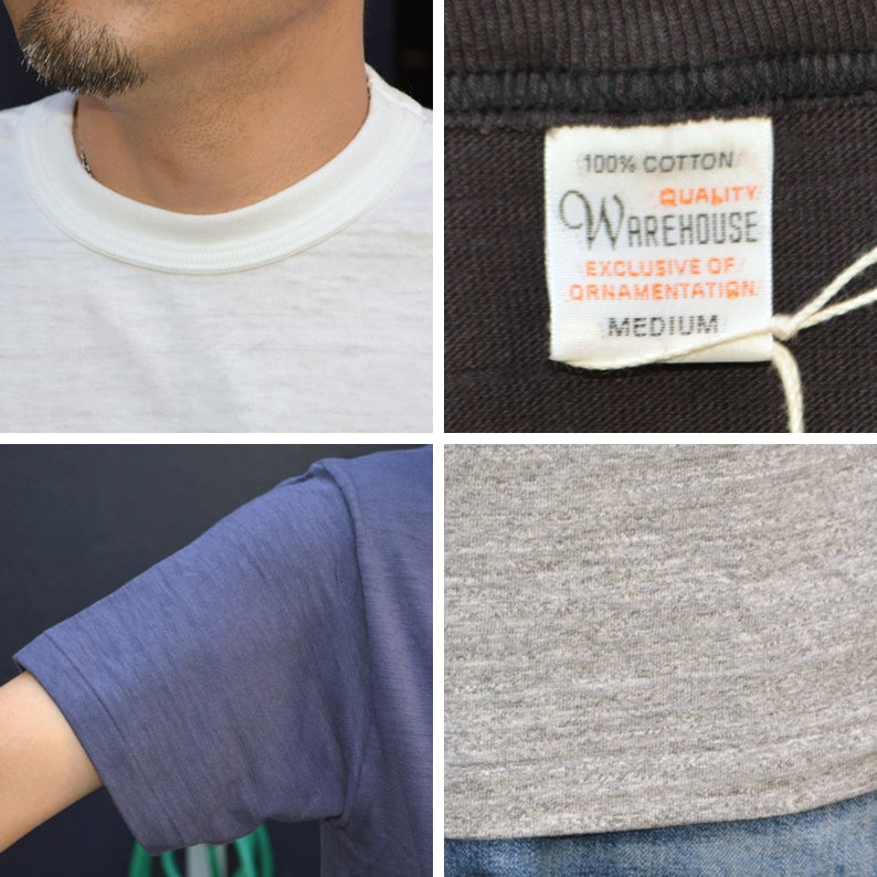 The collar is a "double needle binder neck" often used on durable T-shirts. Wearhouse's 4601 series body is a further upgrade to this specification for sandwiching the fabric. By placing another layer of fabric on top, it has a tough neck design that can withstand years of wear.